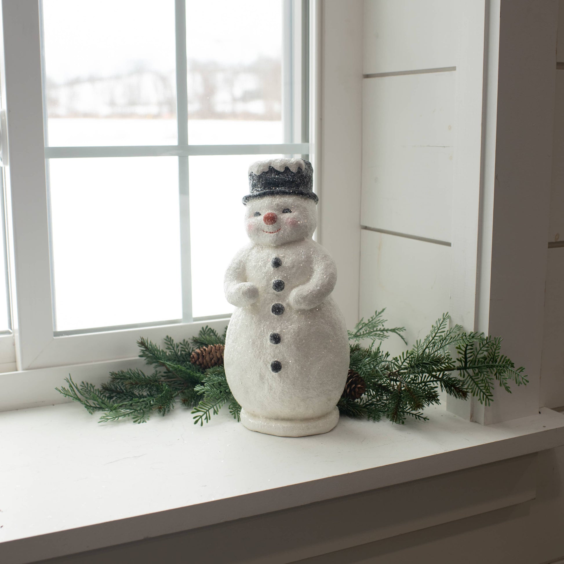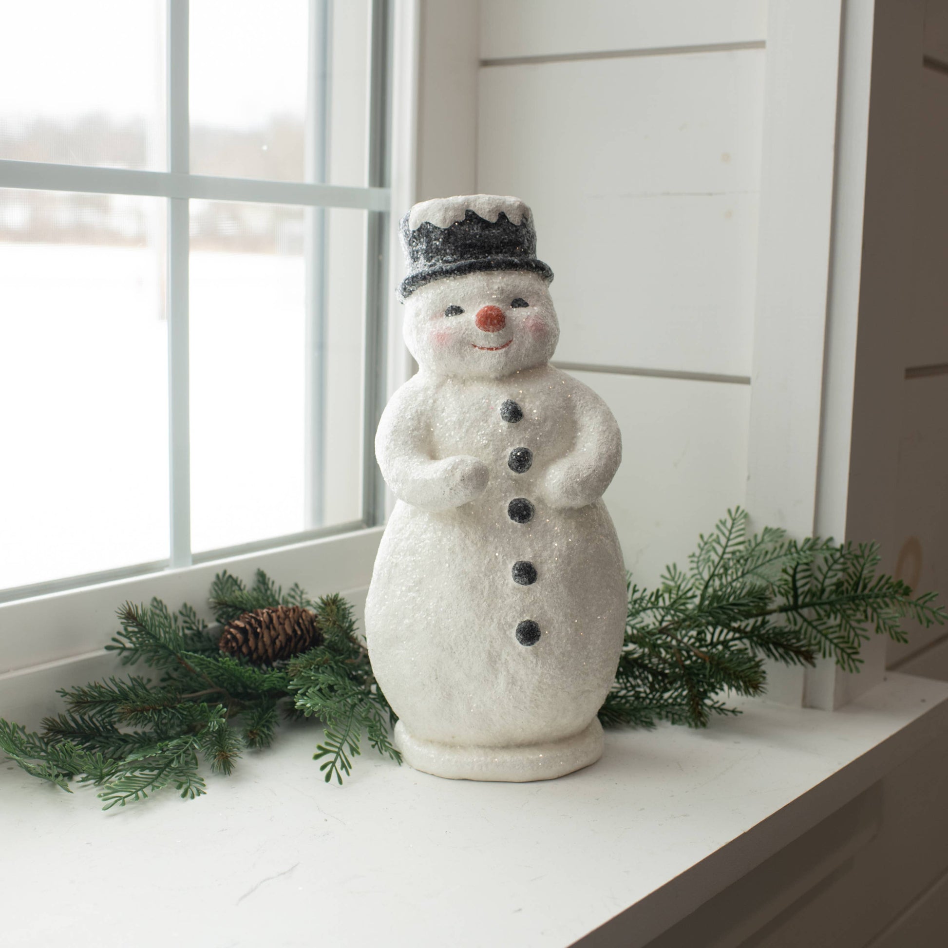 Add a touch of whimsy to your holiday decor with our 12" Red Nose Snowman. This decorative tabletop object, meticulously crafted in Mache, is a charming addition to your winter or Christmas setting. This snowman decoration is a delightful representation of our commitment to quality and uniqueness. It's not just a decor piece, but a joy-sparking element that adds warmth to your home.