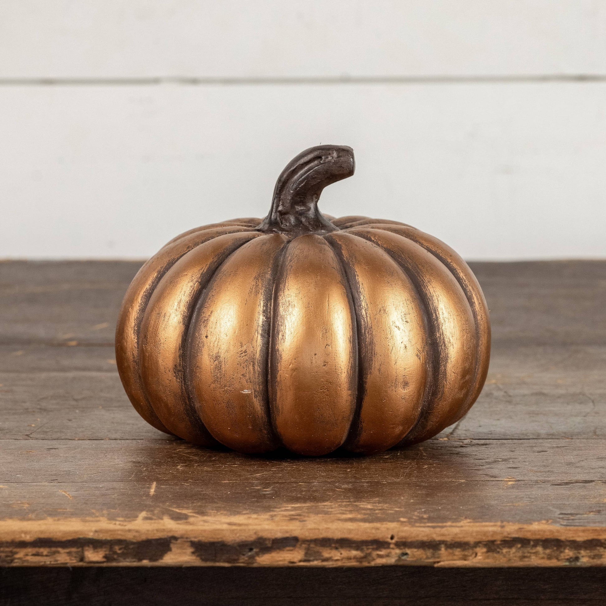 Ragon House presents this stunning gold short pumpkin, perfect for sprucing up your home decor. With a depth of 6.75", this decorative tabletop object is a must-have for any modern or vintage-inspired space. Crafted with utmost precision, it reflects our commitment to quality and passion for unique design. This piece is not just a decor item, but a testament to our dedication to bring beauty and warmth to your space. Add a touch of elegance to your home with this exquisite gold pumpkin.