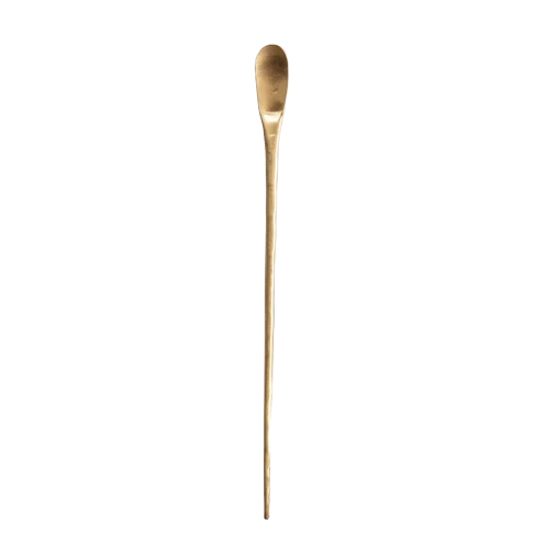 Whether it be for stirring a homemade cocktail at a party or just a nice summer day's tea, this cocktail spoon is a must-have. It is brass and thin, which makes it a great simple utensil for the kitchen. It is lightweight which makes it perfect for cook outs and dinner parties with friends.
