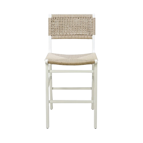 The Astrid counter stool is a can't miss complement to your kitchen island. With a crisp, matte white finish, woven back and rush seat, Astrid seamlessly blends casual elegance and rustic charm for your Farmhouse, Country, or Boho inspired home. Sturdy, hardwood frame, reinforced with stretchers and foot rest, provide exceptional durability for this high style perch.