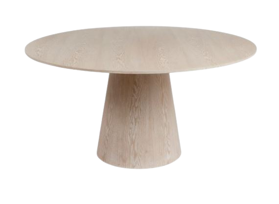 Hamilton round dining table makes the most of its classic, minimalist silhouette. The tapered wood base offers a handsome, solid foundation and light cerused finish accentuates beautifully textured oak grain. With a 59-inch, reverse-beveled top, Hamilton comfortably seats six.