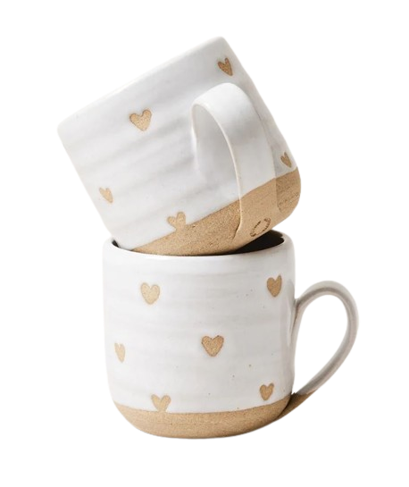 Wheel thrown then hand painted with small hearts at our Vermont studio, this piece is a true labor of love - from our hearts to your hands. Whether you're looking for the perfect gift or looking to make your morning ritual extra special, this mug will make every morning feel like an occasion worth celebrating!