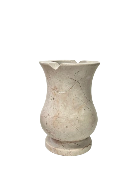 KINDLY NOTE: Due to the natural material of marble, there will be variations in color or veins in relation to the image we present, this is what makes each marble piece unique! - Available in two sizes: Small: approx. 2.75" Dia x 4"H Large: approx. 5" Dia x 7.75"H - Material: Marble - Watertight - Empty the vase and allow to air dry periodically to prevent excess moisture on the vase bottom.