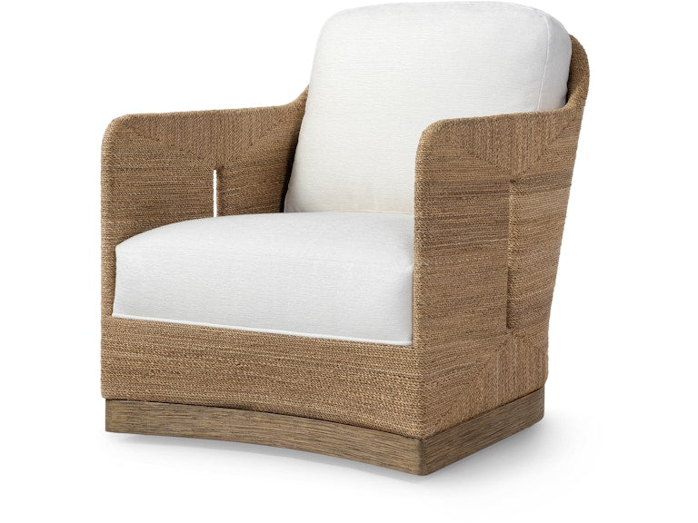 Hardwood frame featuring natural lampakanay rope hand-twisted and woven around double wall back and sides in an intricately unique pattern accented with a hand-distressed hardwood apron. Chair comes with a fixed upholstered seat and loose back cushion.