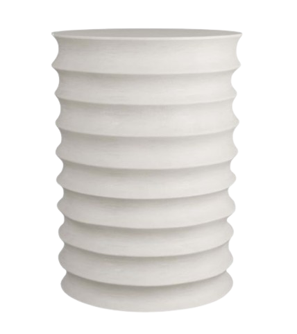 INSPIRED BY THE FINGER GROOVES SEEN IN HANDMADE POTTERY, THE REIKO ACCENT TABLE IS CREATED IN BRUSH STROKES OF WHITE GESSO OVER IRON. THE DRUM-SHAPED SIDE TABLE CASTS SHADOWS, AS LIGHT BOUNCES OFF ITS TEXTURAL RECESSES. FINISH WILL VARY.