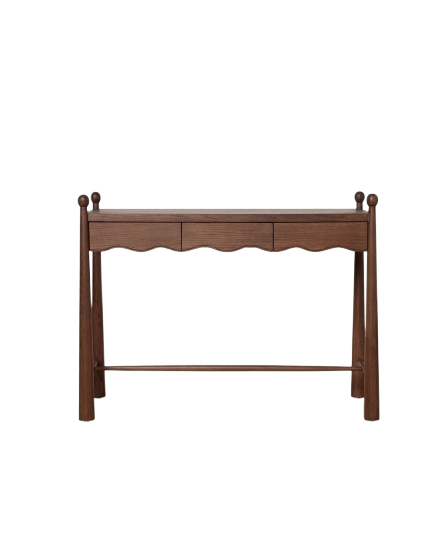 The Wave Console is inspired by French mid-century designs with solid drawers fitted with German soft-close hardware. The sustainably-sourced white oak is finished with a satin-brown stain for a classic feel.